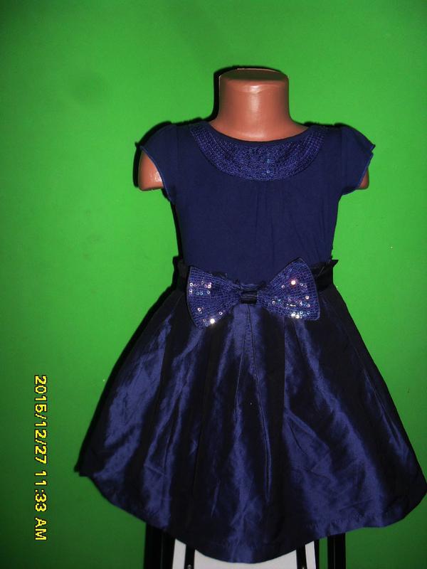 остояние идеальное Некст 5лет рост 110 длина 57 до талии 23 ширина 29, сбоку на молнии, застежка по спинке капелька, по воротнику расшито паетками, бант на талии расшит паетками верх трикотаж, юбка плотный атлас на шелковой подкладке, 165грн
