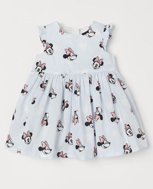 Платье длиной до колена из хлопковой ткани с набивным рисунком. Рукава-крылышки и застежка на пуговицы сзади. Отрезное по сборке сверху, юбка клеш. Верх на подкладке. Состав:100%хлопок.