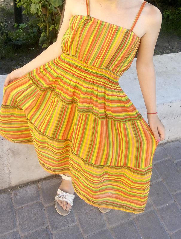 сукня- сарафан дитяча з легкої тканини. Заміри: ПОГ 24 см, тягнеться на резинці, брительки регулюються. довжина 67 см