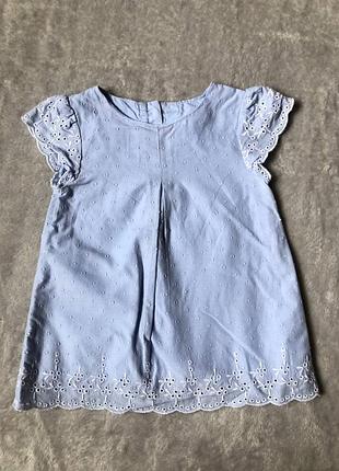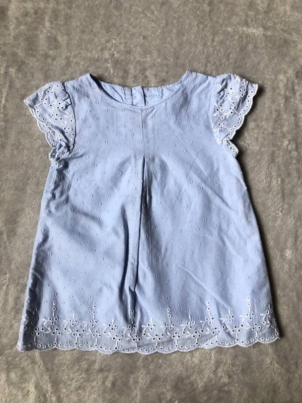 Лёгкое летнее платье на девочку 6-9 мес. из коттона Сзади пуговицы, внутри подкладка Бренд M&S Общая длина 34 см Плечи 19 см Талия (полуобхвать) 24 см