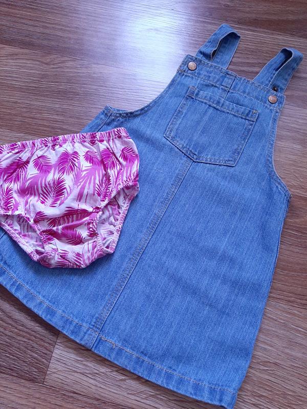 Джинсовий сарафанчик дуже зручний. На худеньку дівчинку. Розмір 92 але ми носили з 86. Трусики в комплекті.