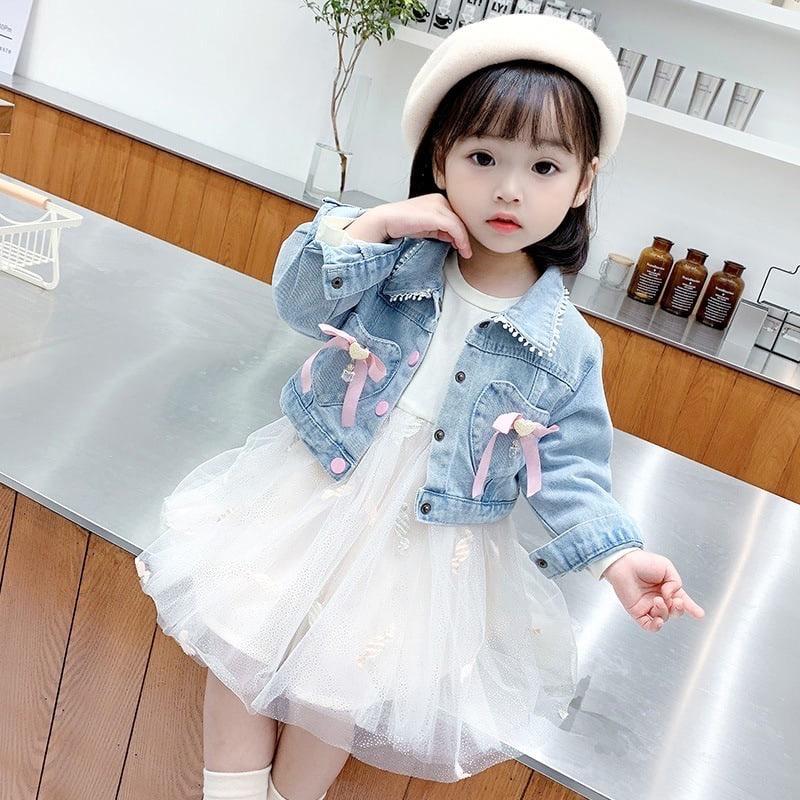 🦋Костюм 2 в 1, платье и укороченная джинсовка. Пиджак: джинс плотный. Платье: верх трикотаж,низ три слоя фатина,подкладка коттон. В поясе резинка. Брошки на джинсовке сьемные. Размеры пишу по бирке, смотрите замеры. 🎽р.90 - Пиджак: дл.27см., шир. 30см., рукав 30см. Платье: дл.48см., шир.27см., рукав 30см.(2шт.) 🎽р.100 - Пиджак: дл.28см., шир. 31см., рукав 32см. Платье: дл.50см., шир.30см., рукав 32см.(2шт.) 🎽р.110 - Пиджак: дл.31см., шир. 34см., рукав 36см. Платье: дл.54см., шир.30см., рукав 35см.(2шт.) 🎽р.120 - Пиджак: дл.32,5см., шир. 35,5см., рукав 38см. Платье: дл.59см., шир.33см., рукав 38см.(2шт.) 🎽р.130 - Пиджак: дл.34см., шир. 37см., рукав 41см. Платье: дл.64см., шир.36см., рукав 42см.(2шт.) Замеры сделаны одной ростовки, допускается погрешность 1-3см (код01)