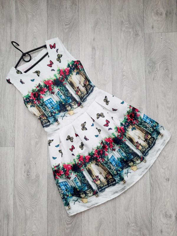 Праздничное платье на девочку 11-14 лет, на рост 152-162см, сзади застежка молния состав ткани 80% хлопок и 20% полиэстер. Стан идеален, оденет один раз на торжество, никаких дефектов нет. Замеры: Длина полочки от плеча до талии 40см Длина юбки 43см Талия полуобхват 35см Грудь полуобхват 37см Ширина плеч от края до края бретельки 34см.