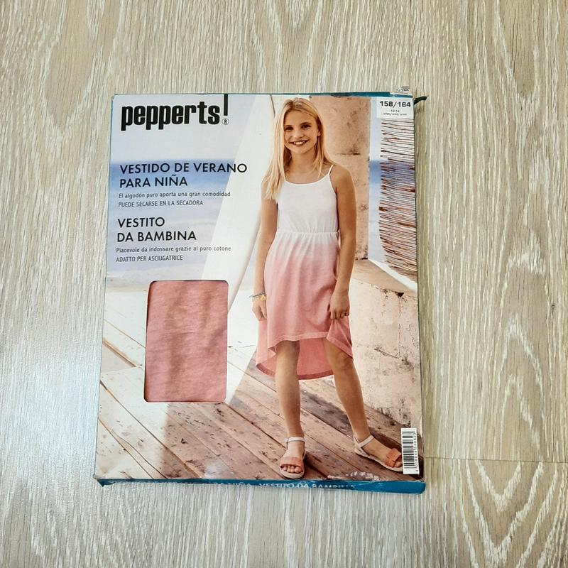 Плаття на бретельки, ззаду подовженне, градієнт від світлого до темно- рожевого, трошки вище пояса на резинці ✔зріст 158-164 см, вік 12-14 пог-39,5 см, довжина бічного шва від паху до низу 89см, спереду 85см, ззаду 108см 💬100% котон 🏷 pepperts