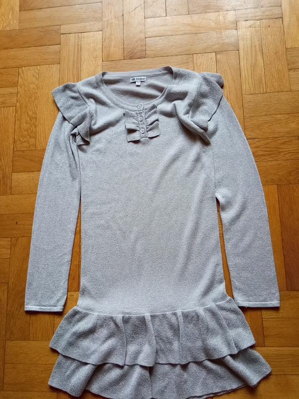 Сукня сріблястого кольору. з люрексовою ниткою. з рюшами. заміри : ПОГ 34 довжина 84 пот 35 довжина рукава 60