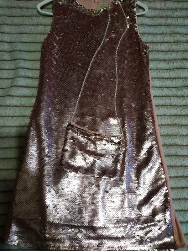Продам платье для девочки с паетками!р.134 (надето дважды на праздник), сзади ткань костюма, внутри есть подкладка. Единственный маленький дефект сфотографировала,но он был при покупке,не обратила внимание,не заметила,т.к паетки в две стороны разглаживаются и это вообще не заметно).Брали за 780 грн.Смотрится дорого и красиво)