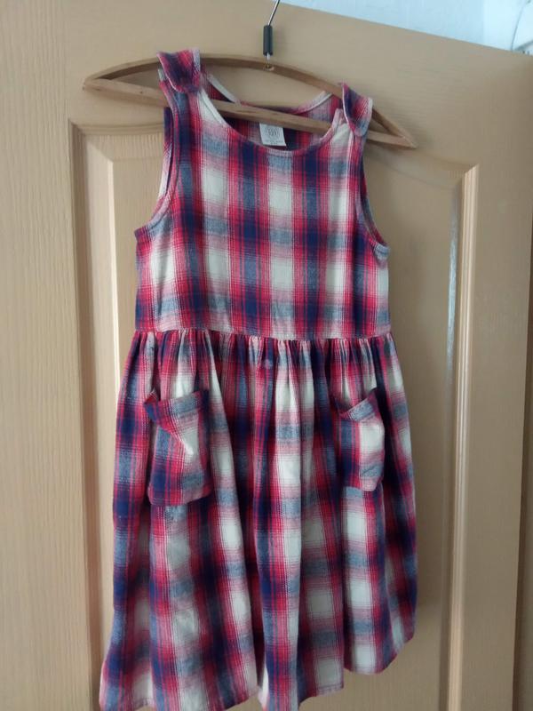 Плаття-сарафан для дівчинки з щільного котону ( варіант осінь-зима). Країна виробник - Італія. Склад тканини - котон Розмір європейський - 34, це наш - 30, 32. На ріст 110-116 див. ОГ - 60