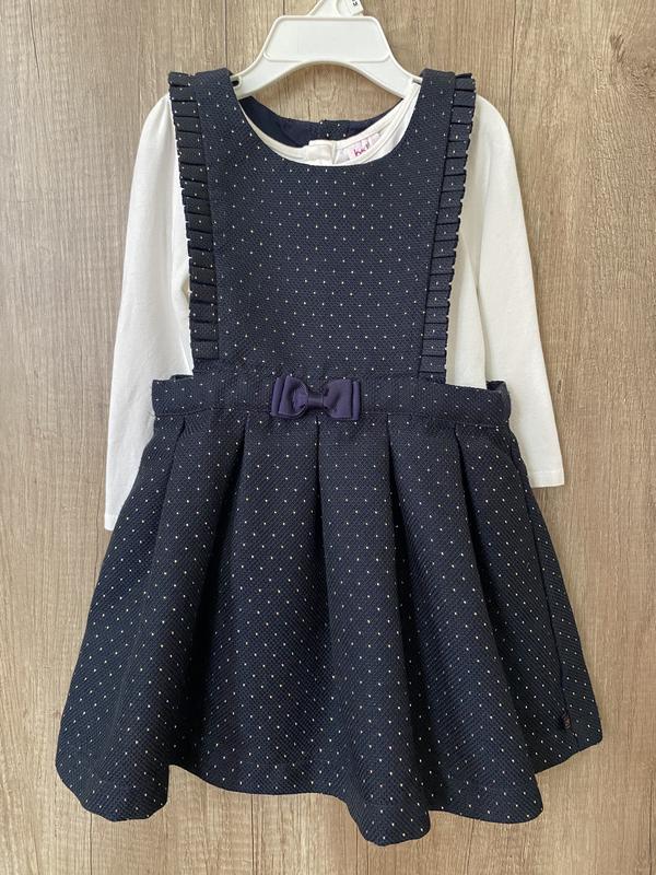 Комплект (сарафан + реглан) Baker. Состояние новой вещи. Надень один раз. Цвет темно синий, в реальности темнее чем на фото. Длина сарафана 48 см., в поясе 25. Ткань плотная, на катоновой подкладке. Довжина реглана 32 см., пог - 25 см., рукавчик 29 см.
