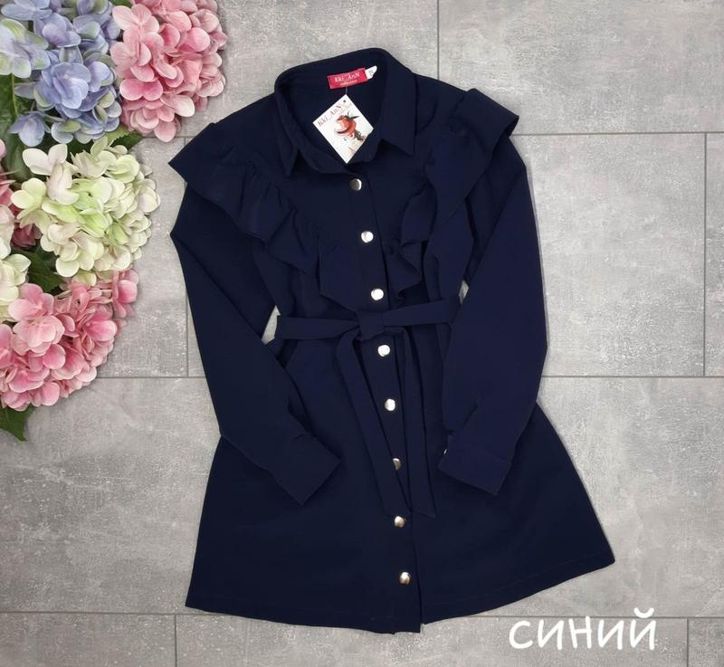 Новинка !!! Тренд этого года !!! Школьное платье , украшено рюшей , рукава на манжетах , застегивается на кнопочки , поясок в комплекте , ткань костюмка Длина/рукав/п********** 146-72/56/40 152-75/58/42