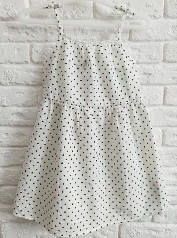 Сарафан Primark белый в горох. Размеры: 104: длина 55см, ширина 28см. 110: длина 58см, ширина 29 см. 116: длина 61см, ширина 30см Состав ткани: 59%котон, 41%полиэстер. Страна-производитель: Индия.