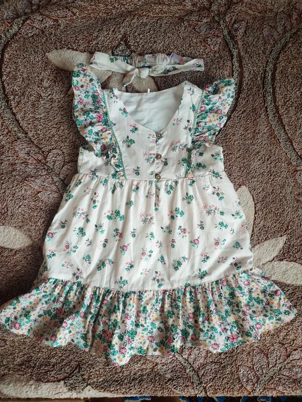 Котонове платтячко для дівчинки в ідеальному стані без дифектів. У комплекті з пов'язаність язкою на голівку.