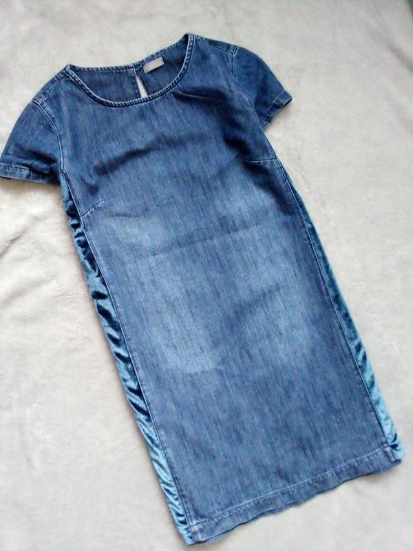Джинсова сукня сарафан від NEXT з велюровими смугами по бокам 12 років 152 см зросту довжина 73 см н.о.г.46 см н.о.плечі 33 см н.о.т.44 см н.о.б.47 см 100% бавовна тканина комфортна тактильно,та зручна для рухів м'якенька.середньої плотності колір насичений ІДЕАЛЬНОГО СТАНУ