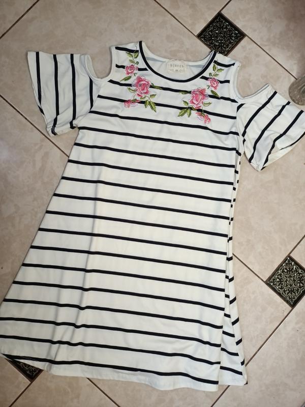 Платье с Америки, указан возраст 12, но думаю будет и раньше. Замеры: длина 75см, пог 41см, ниже свободное. Открытые плечики) Одето малой 1 раз, переросла.