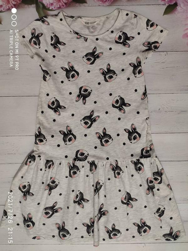 100% котон Платья h&m б\у рр.8-10лет. 134-140 см. Состояние идеальное, без каких либо дефектов. Замеры: серое с зайчиком длина от плеча 70 см., ПО под мышками 32 см., плечи 27 см.