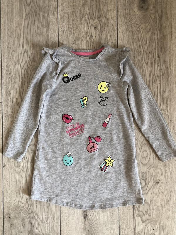 Сіре плаття (може бути, як туніка), розмір 116. Заміри: Довжина виробу-53, напівобхват під руками-29, довжина рукава-38