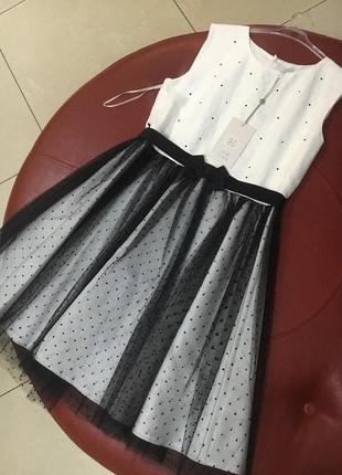 Платье Sly Польша р134 белый верх и чёрный низ .Грудь стразы