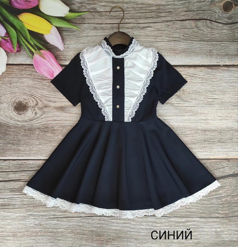 Отправка вторник,среда🧡 Школьное платье с кружевной вставкой ткань мадонна Жабо х/б +качественное кружево Сзади на молнии цвет синий замеры:длина/талия/ширина плеч/ширина по спинке 122-55/54/26/27 128-59/56/27/29 134-63/60/28/31 140-67/64/30/32 122-3шт+2шт в наличии 128-2шт 134-2шт 140-1шт.малюкам