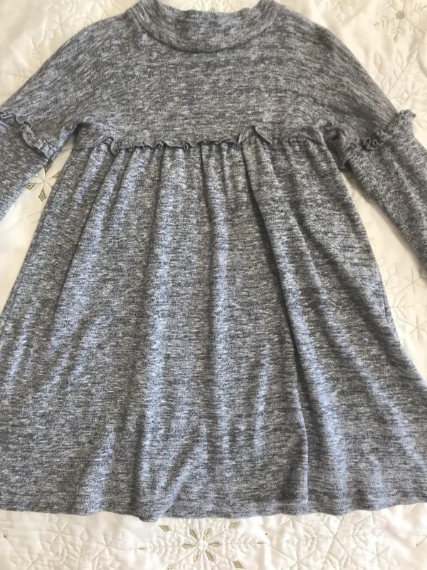 Платье на девочку Next, цвет серый меланж, размер 4-5, но можно и на 6 лет( большимерит) Замеры: длина-61, ширина-30( резиночка тянется до 50), рукав от горловины -48..