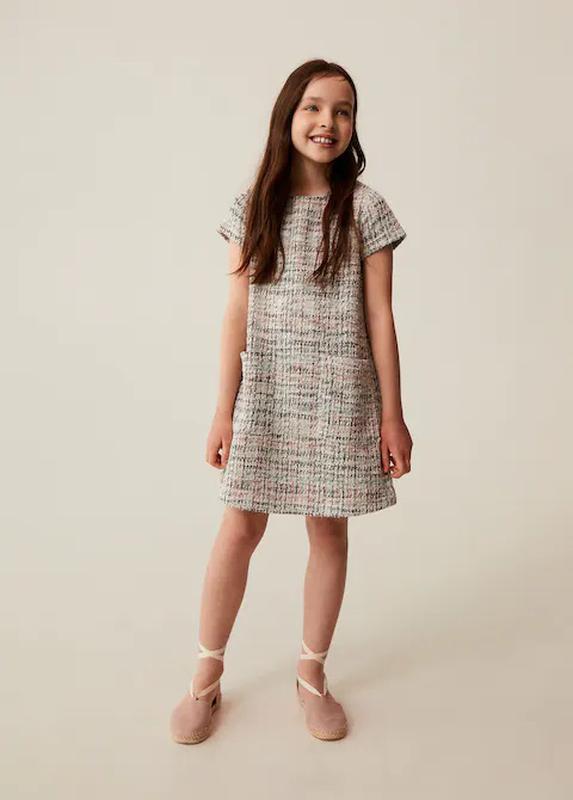 Сукня MANGO на 9 років на р.134 та на 10 років на р.140. Тканина із сумішевої бавовни. Твідова тканина. Короткий дизайн. Прямий дизайн. Кругла шия. Короткі рукава . Дві бічні накладні кишені. Застібка-крапля ззаду. Склад: 52% поліестер, 48% бавовна. 9 років на р.134 - сукня трапецеподібної форми. довжина - 71 см, напівобхват під пахвами - 38 см, довжина плеча - 6,5 см, по спинці від плеча до плеча - 27 см.
