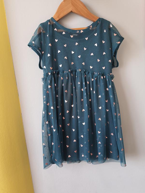 невероятно красивое платье George 2-3 года изумрудный цвет, золотые сердечки