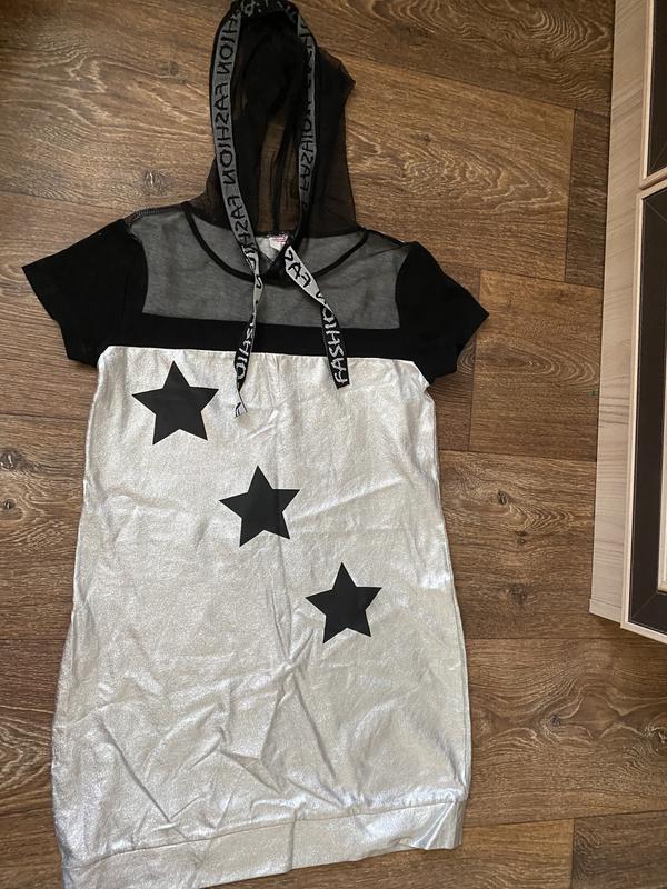 Платье с серебряным покрытием, есть капюшон В отличном состоянии 9-10 лет Рост 134