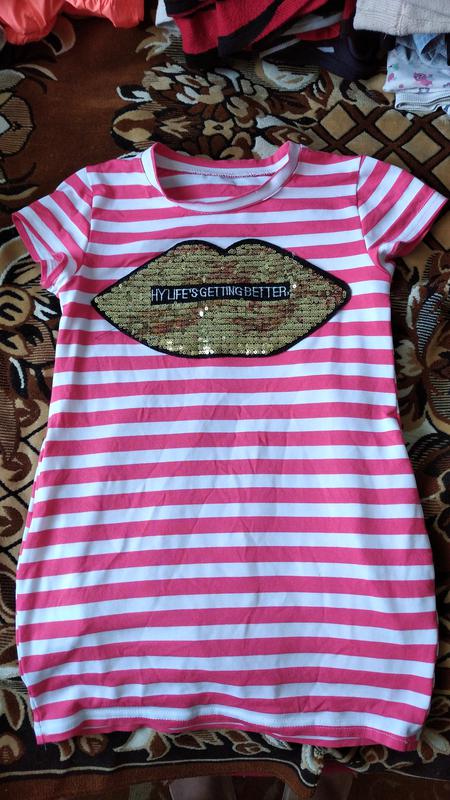 Тунічка для маленької принцески, тканина трикотаж супрем, аплікація з паєток пришита . Стан нової. Довжина 54, ПОГ 33