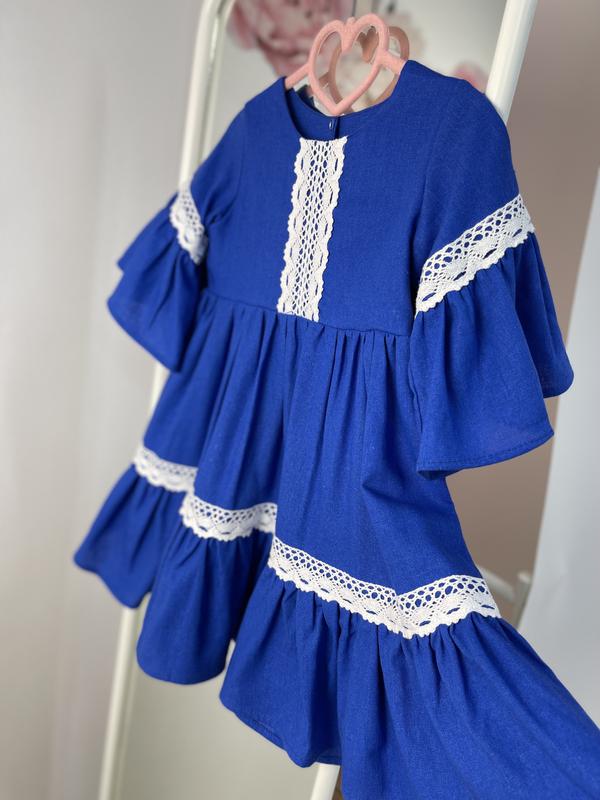 Сукня з мереживом синя з льону легка та якісна підійде в школу