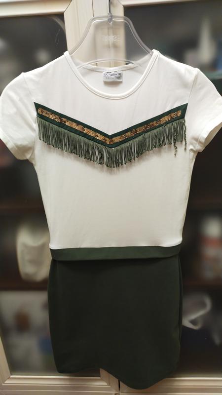 Платье для девочки на рост 140-146 см.Длина 77 см.Плечи 32 см.По талии 31 см, по бёдрам 33 см.
