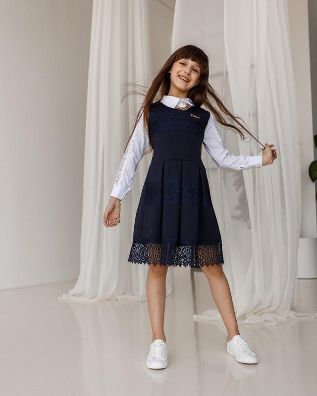 Шикарная новинка! Школьный сарафан, ткань плотный трикотаж и кружево Сзади на молнии и поясок пр-ль Украина Длина / ПОГ р.116 58см/ 30см - 1 шт р.122 61см/ 31см - 3 шт