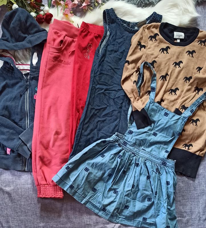 пакет одежды на 8-9 лет 2 сарафаны 1 теплая туника 1 кофта 1 лосины 1 штаны
