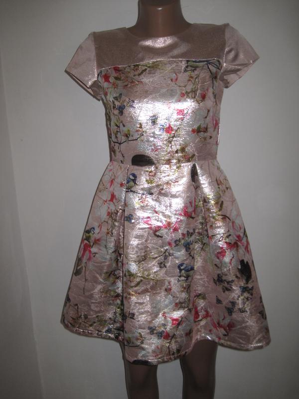 Золота набивна парча з яскравим квітковим принтом плаття некст на 13лет
