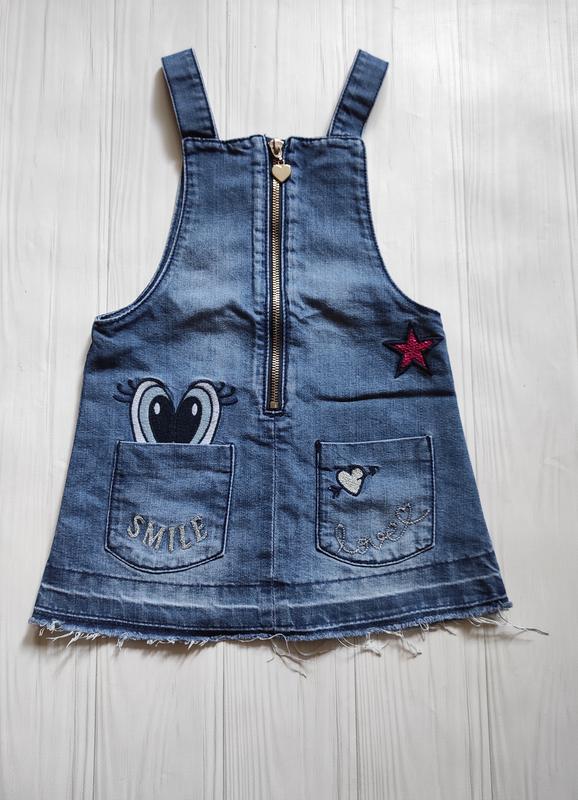 Крутой джинсовый сарафан на 2-3 года. Длина 50, ширина 29.