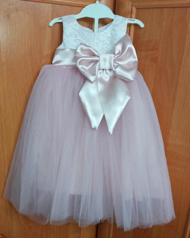 Платье находится в наличии пудрового оттенка с большим бантом и фатиновой юпкой. Отправляем в течение 3 рабочих дней.