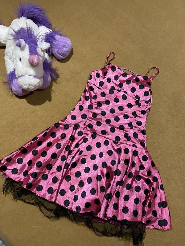 Хорошее платье в горошек для девочки для выступлений/ На теле нет, замеры на фото, бретели тоненькие, застегивается сбоку на замок молнию на юбке есть подъюбник -юбник-полопеция)из нюансов есть незначительные затяжки сзади на спинке нет шнуровки)ное тягучее плотное) Измеры болеро Длина 24,5 см) Плечи 27 см) Пог 31 см) Снизу 30,2 см) Рукав 15,6 см) Продается без возврата.
