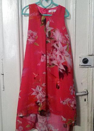 Платье розового цвета,полиєстер,с подкладкой,ПОГ 35,ПОБ 65,длина переда 80,зад-94см