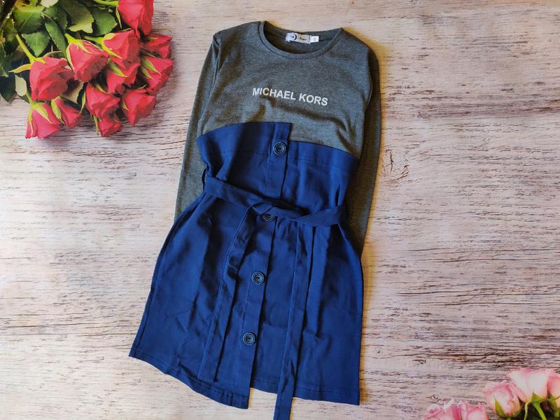 Стильное платье для девочки ткань трикотаж и стрейч-коттон, поясок в комплекте, украшено цепочкой. замеры- длина/рукав/пог 134-65/42/35 140-68/46/36 146-71/48/38 152-73/49/39 158-77/53/40