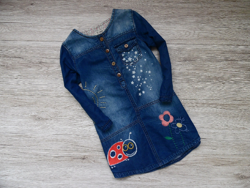 Легкое джинсовое платье Next в идеальном состоянии. Размер указан 2-3 на рост 98 см, но большемерит. Рукав можно носить с подворотом. Замеры: Длина от плеча до низа 55 см Ширина под ручками 31 см Рукав от плеча без подворота 34-35 см.