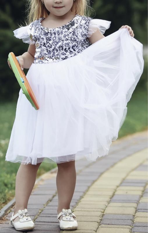 Нарядное платье фатиновое, пышное Пайетки серебро Фатин белый Подойдёт на рост 90-104 Регулируется завязками Состояние идеальное