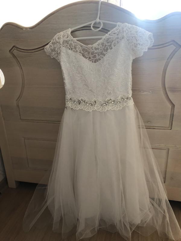 Сукня шилася під замовлення на випуск у садочок! Дуже гарна відкрита спинка! Є один нюанс - на підкладці спіднички є дві плямки, але зверху на фатіні наклеєні камінці, тож їх не видно! Додала фото.