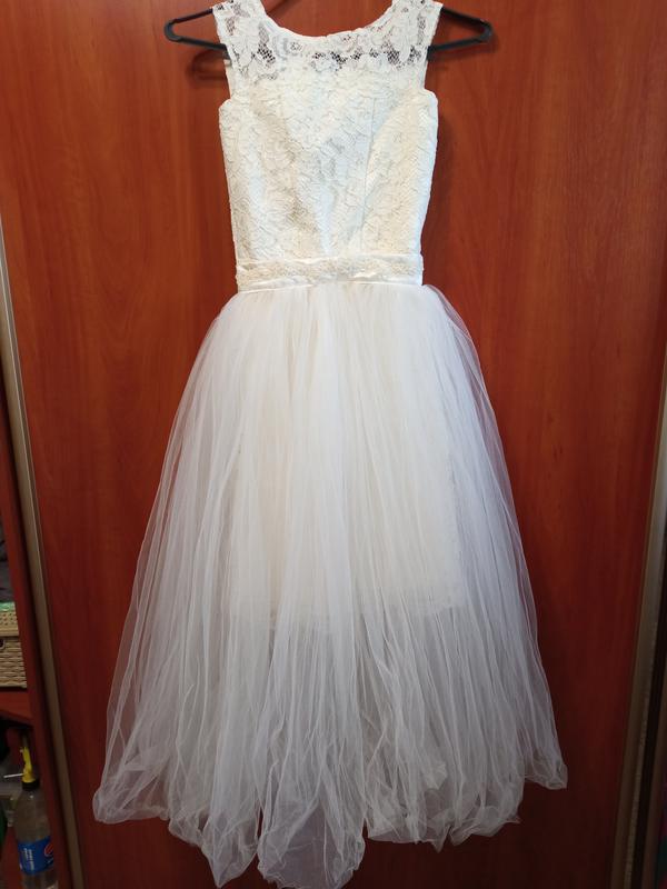 Дуже гарна сукня на дівчинку, на спині є затяжки так що може підійти на різну комплекцію дитини, також є шифонова спідниця яка вдягається зверху сукні, можно вдягати а можна й ні. ПОГ - 32 см , довжина сукні - 82 см , довжина зі спідницею -110 см