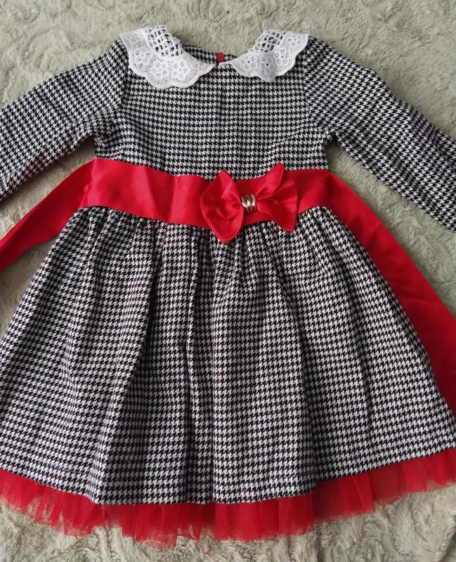 Сукня для дівчинки 3-5 рочків, теплий трикотаж, атласний пояс-бант та мереживний комір! В ідеальному стані! Одягнена декілька разів!