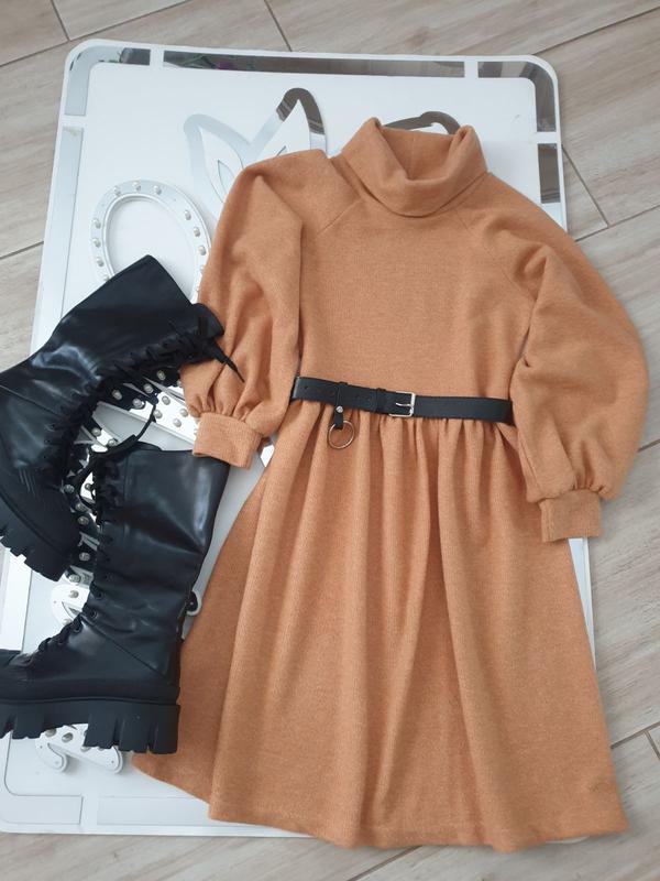 Модное тепленькое платье для девочки Ткань ангора вязка, поясок в комплекте Длина/рукав от горловины/п********** 146-83/56/37 152-86/58/38 158-88/60/39 164-92/61/40 артmasya