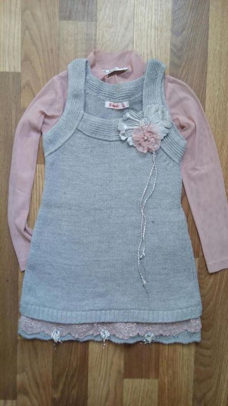 Комплект: гольфик-сеточка + вязаный сарафанчик. Очень нарядный. На сарафане съёмная брошь. Подол украшен кружевом. Покупали в фирменном детском магазине. Был одет на пару мероприятий.. Отличное состояние. Длина сарафана - 56 см. Длина рукава гольфика - 41 см. Длина гольфика - 42см. Доставка: Оплата на карту Приватбанка Отправляю Новой почтой, Джастин, Укрпочтой и Мист Смотрите и другие мои объявления! Только качественные, брендовые и в отличном состоянии вещи!