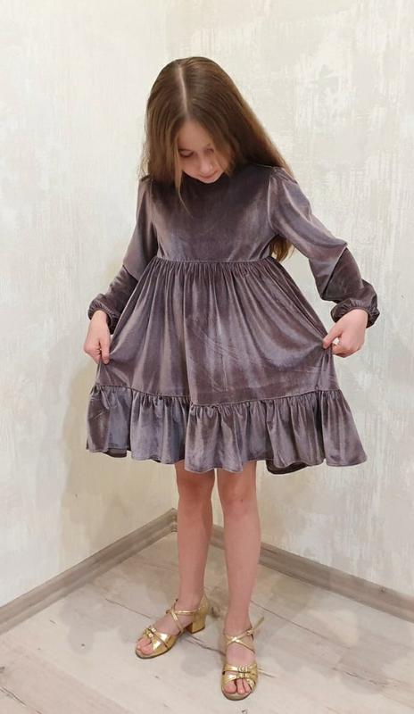 Красивое и теплое платье Тканина бархат велюр замеры-длина спереди\длина сзади\ пог\длина рукава от плеча 134рост-65\75\34\47 140рост-67\77\35\51 146рост-74\80\37\54 152рост-75\84\39\55 158рост-78\85\40\58