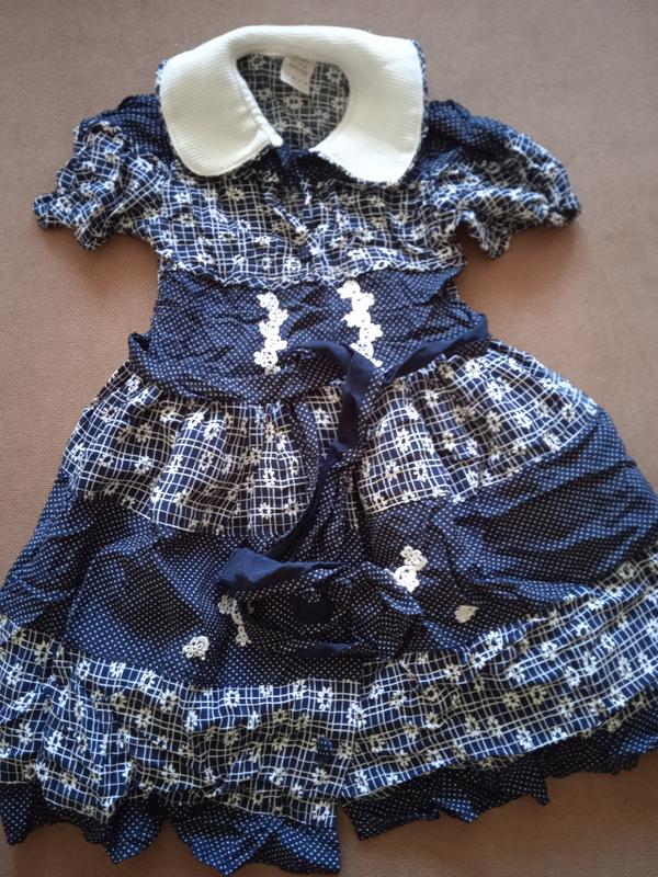 Платье для девочки синего цвета. Размер 110. Длина 57, ширина 40, талия 28, рукав 16.