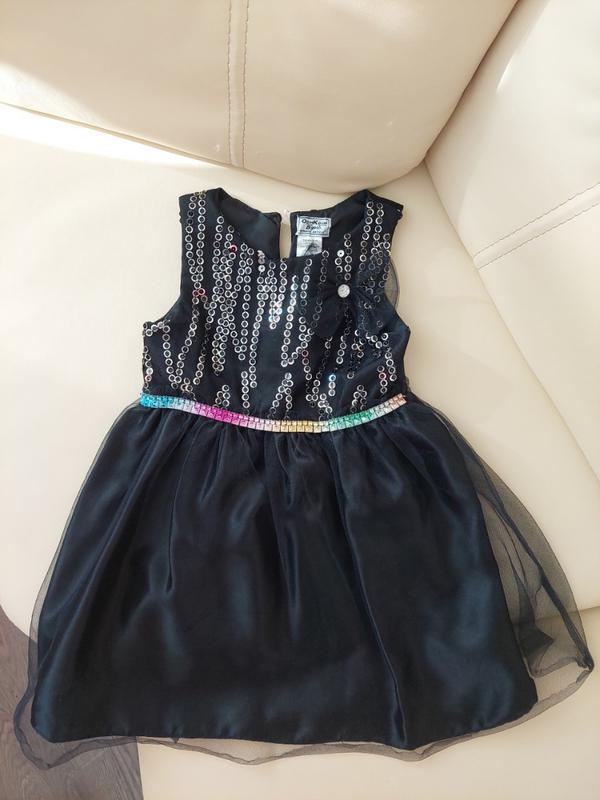 Очень красивое платье, впереди нарядно блестит. Размер указан 5Т, но будет дольше, не маломерка. Замеры: длина от плечика 61см, ширина под рукавами 29см