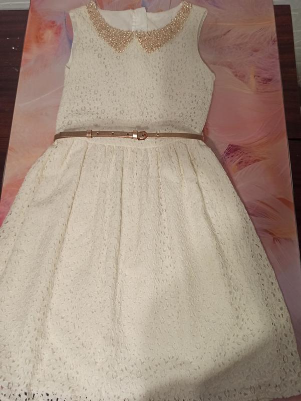 Платье ажурное с вышитым воротником. Цвет молочный. Пояс в комплекте.
