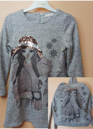 Сукня + Рюкзак. Туреччина. Заміри : 4/104 ПОГ - 28 см, Довжина по спинці - 53 см, Рукав - 37 див. 5/110 ПОГ - 29 см, Довжина по спинці - 54см, Рукав - 38 див. 6/116 ПОГ - 30 см, Довжина по спинці - 59 см, Рукав - 42 див. 7/122 ПОГ - 33 см, Довжина по спинці - 62 см, Рукав - 42 див. Склад поліестер, рюкзак без підкладки. У вимірах можлива похибка +\- 1 см, так як виміри робляться в ручну однієї одиниці з всієї партії. ВДАЛИХ ВАМ ПОКУПОК!