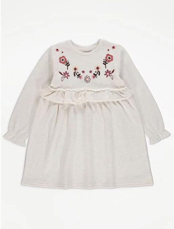 Гарне плаття для дівчинки. Зроблено з м'якого матеріалу. Всередині на флісі. Прикрашене вишивкою. З довгими рукавами і круглим вирізом горловини. Склад: 60% бавовна, 40% поліестер. Розмір Довжина по спинці від плеча Ширина під руками Довжина рукава від плеча 1,5-2 роки 48 см 30 см 32 см 2-3 роки 50 см 31 см 34 см 3-4 роки 54 см, 32 см 36 см 4-5 років 56 см 32,5 см 38 см 5-6 років 58 см 33,5 см 41 см