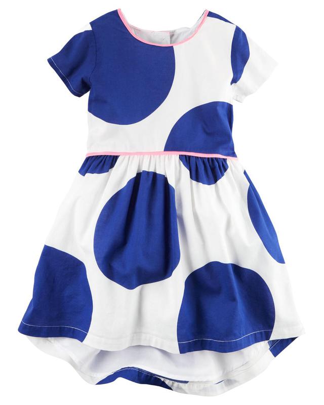 Платье для девочки 5 Т 105-111 см белого цвета в синие круги, перед немного укорочен, застежка пуговицы по спинке. Состав : 100% cotton